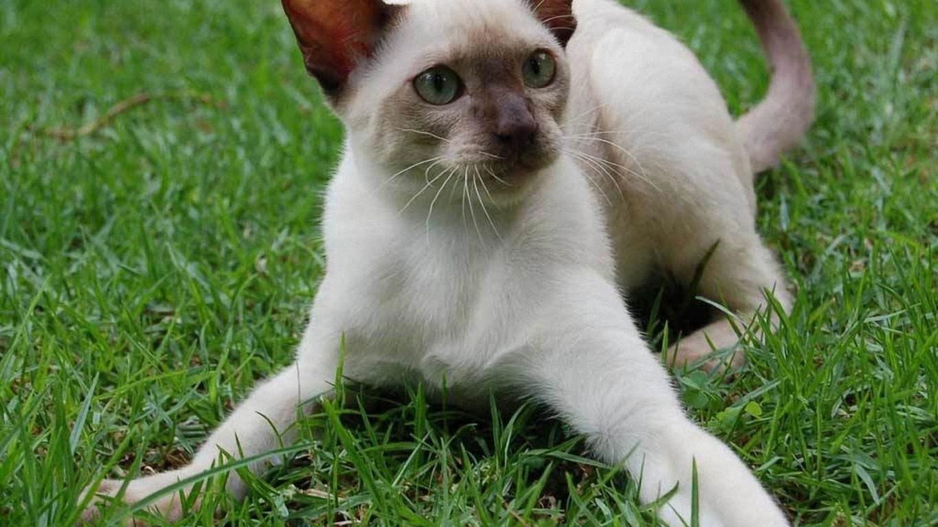 » Wallpaper Playful Siamese cat on grass