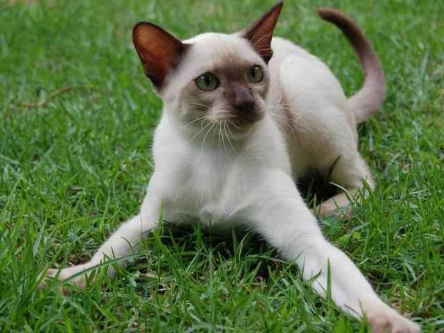 Wallpaper Beautiful fluffy Siamese cat on grass