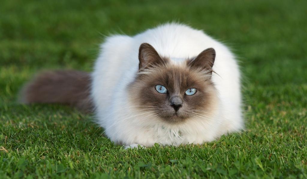 Wallpaper Beautiful fluffy Siamese cat on grass
