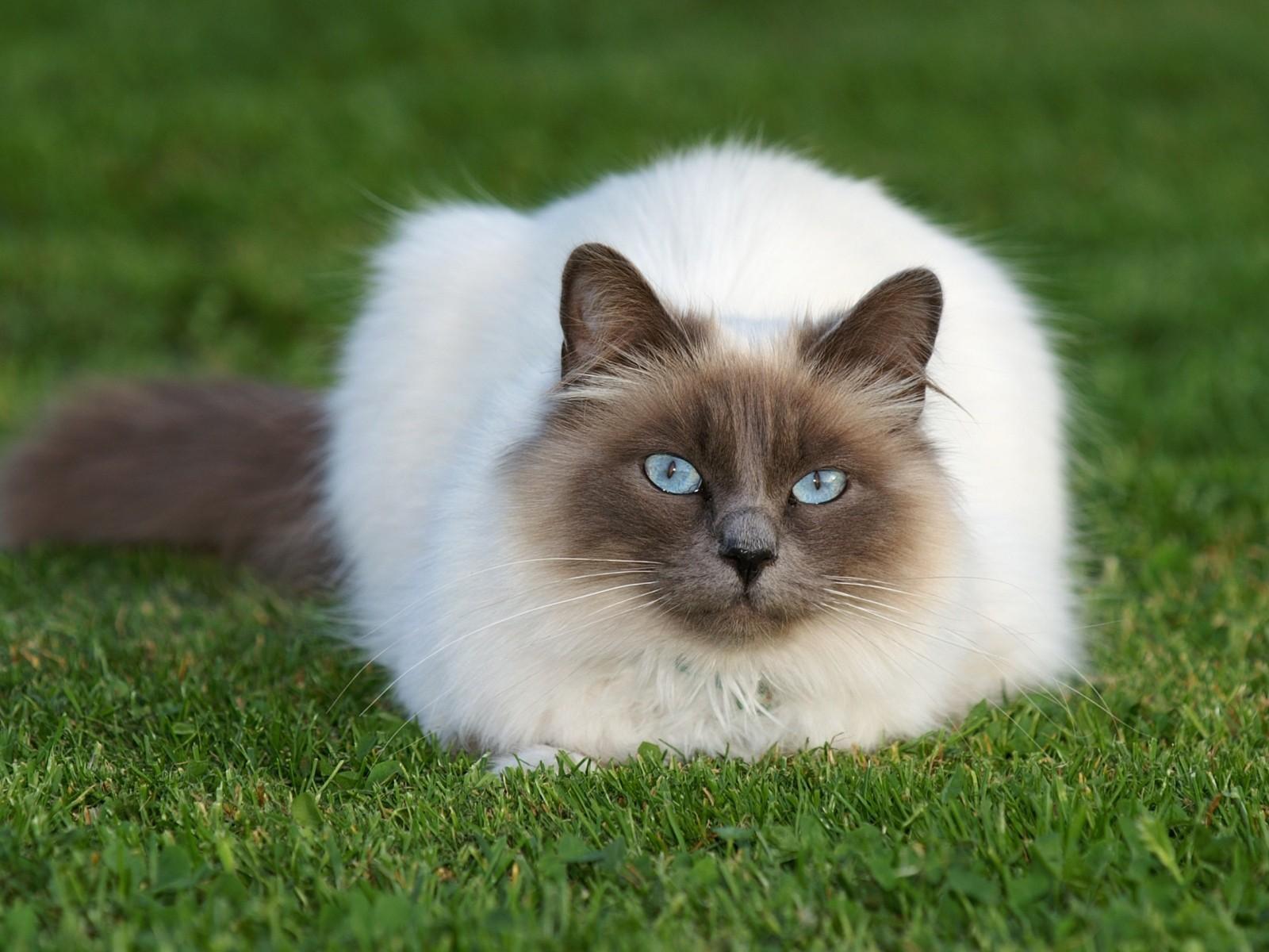 Wallpaper Beautiful fluffy Siamese cat on grass