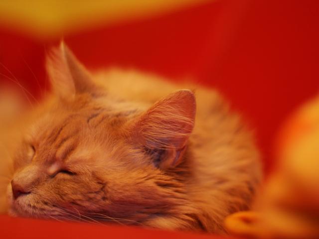 Wallpaper Red Maine Coon cat on a red blanket
