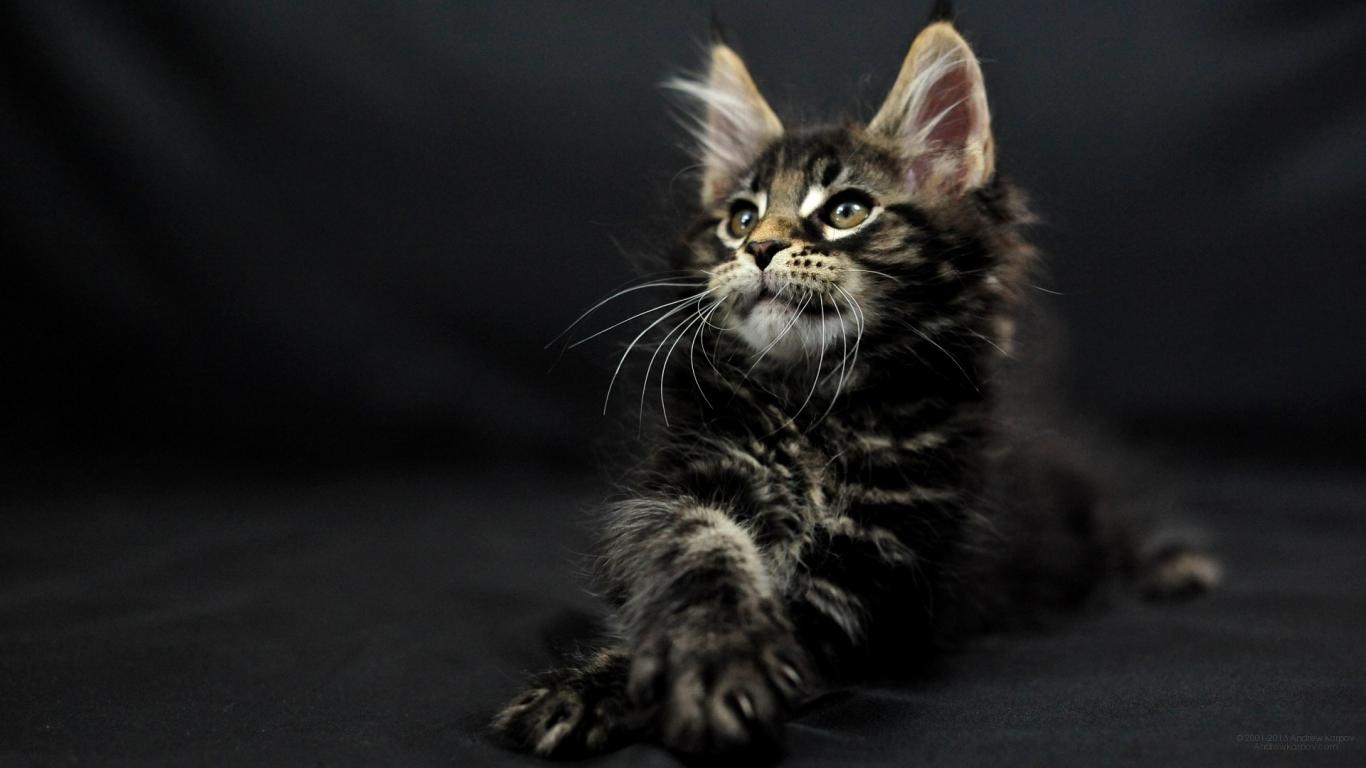 Wallpaper Cute little dark-colored cat Maine Coon