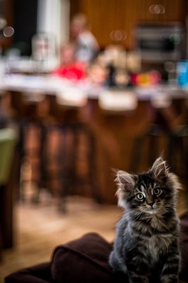 Wallpaper Small and cute gray cat Maine Coon looking at someone