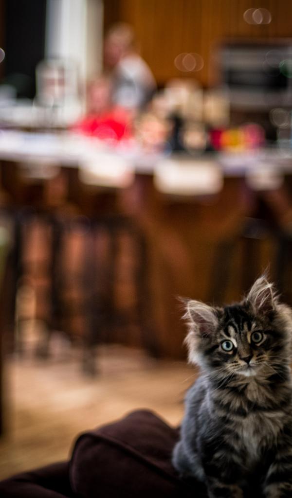 Wallpaper Small and cute gray cat Maine Coon looking at someone