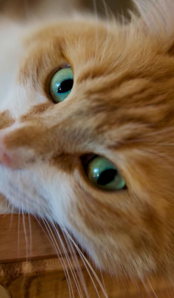 Wallpaper Beautiful red green-eyed cat maine coon close-up