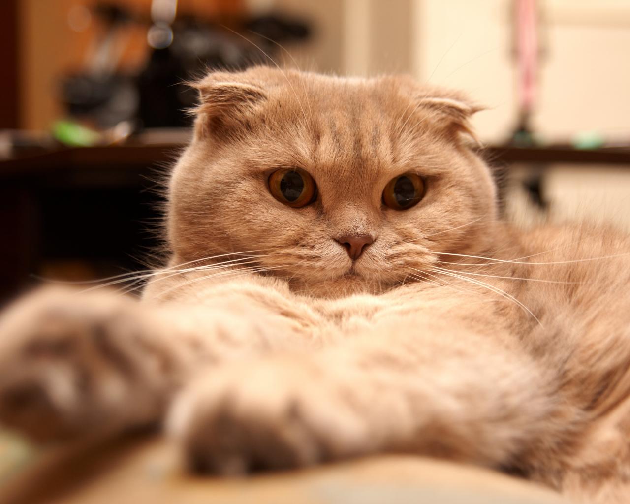 Wallpaper Beautiful Scottish Fold cat saw something
