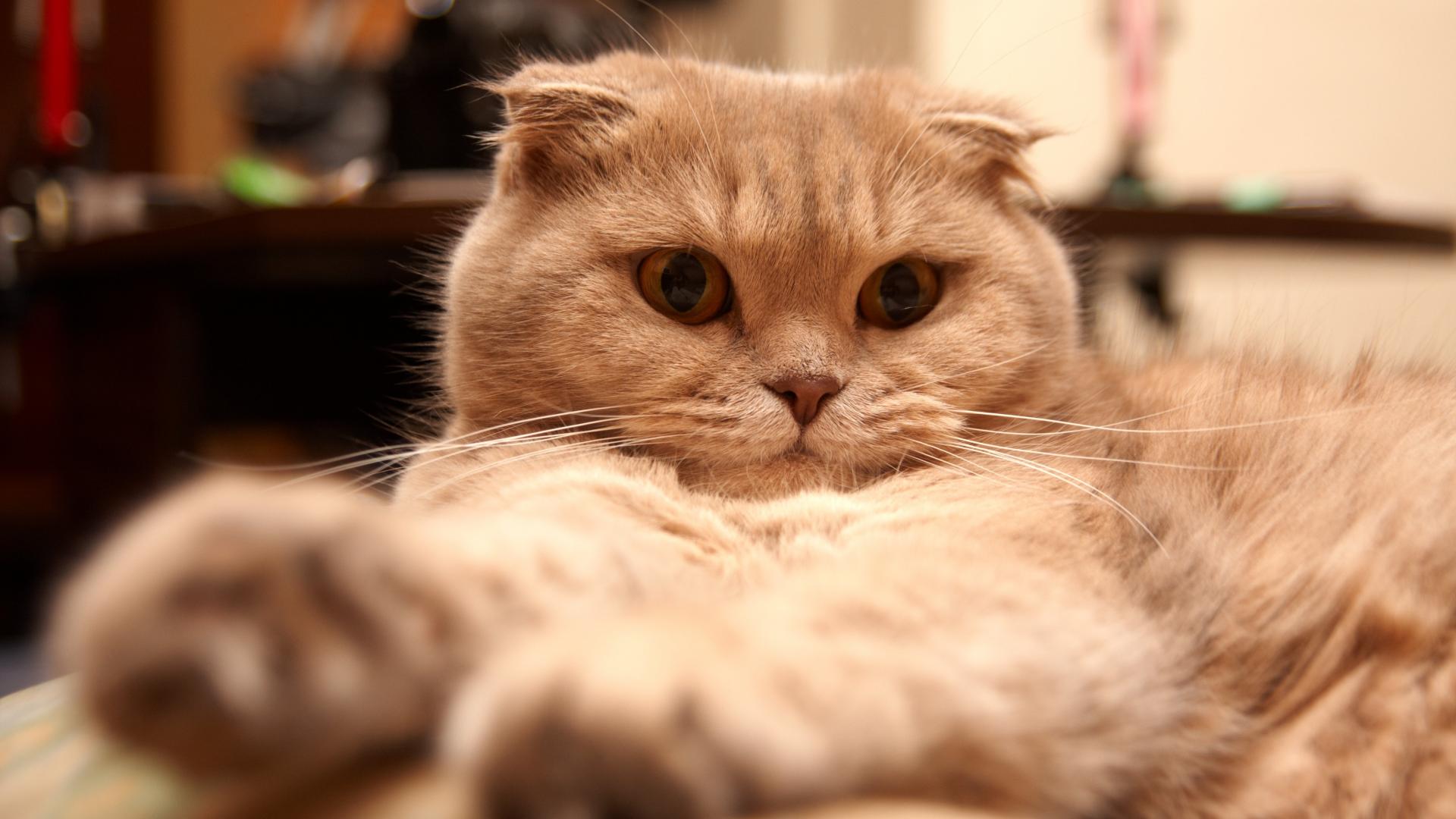Wallpaper Beautiful Scottish Fold cat tired
