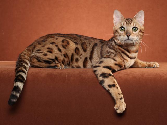 Wallpaper Bengal cat posing on a brown background