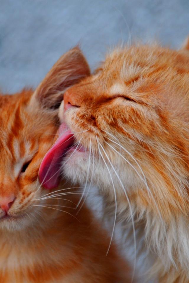 Wallpaper Small beautiful Maine Coon cat licking its paw