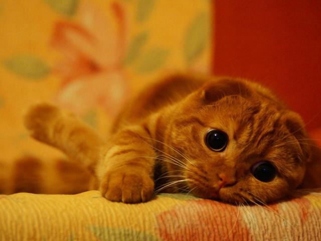 Wallpaper Cute red Scottish Fold cat