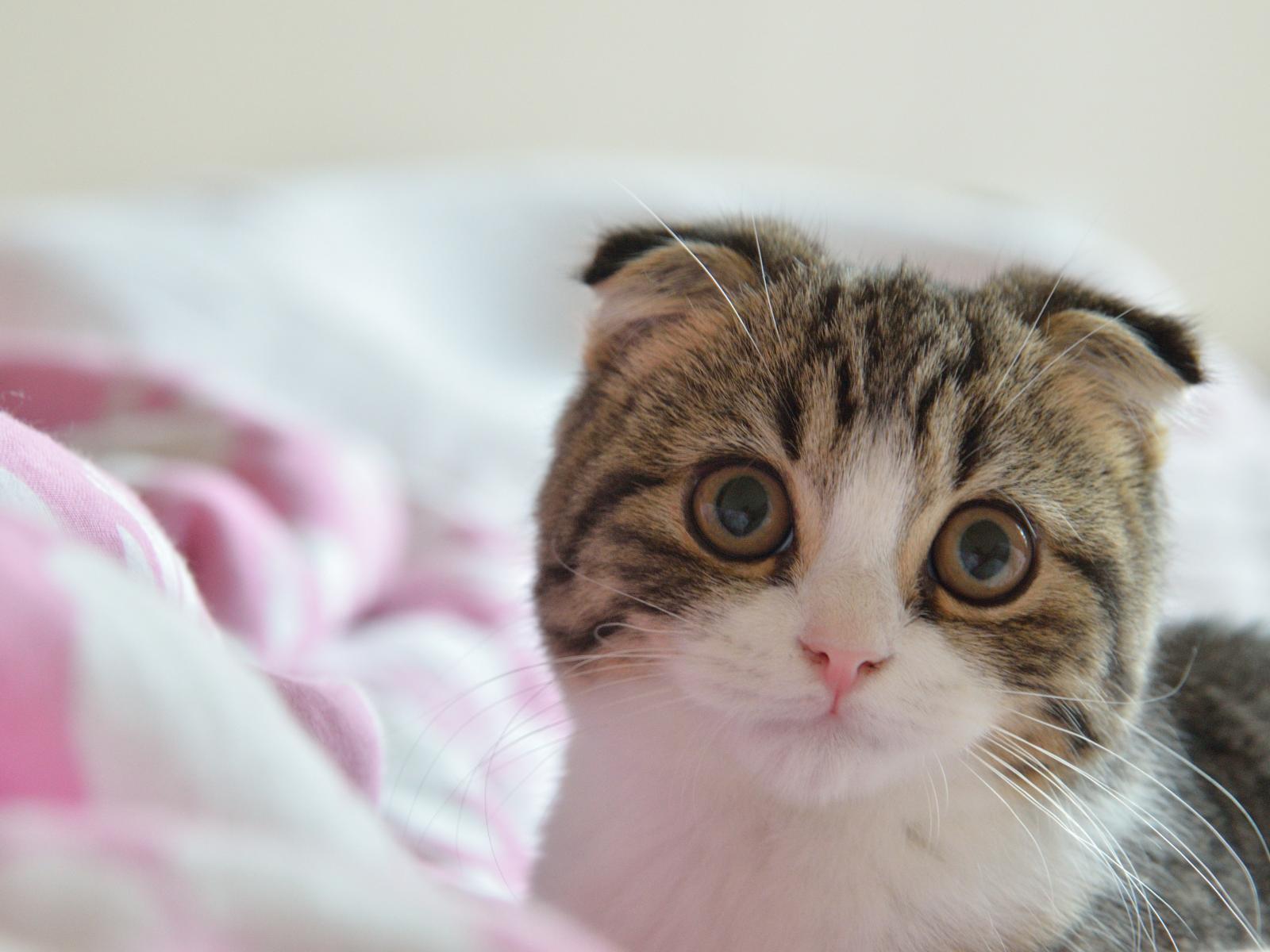 Wallpaper Scottish Fold cat in bed