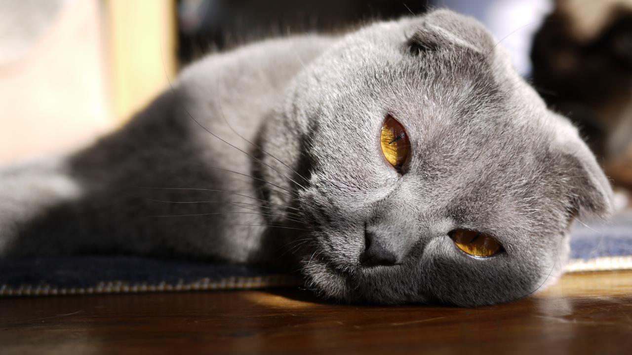 Wallpaper Beautiful gray Scottish Fold cat with red eyes
