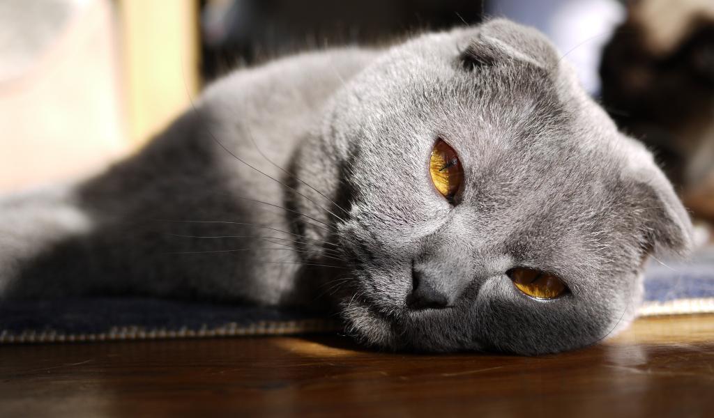 Wallpaper Beautiful gray Scottish Fold cat with red eyes