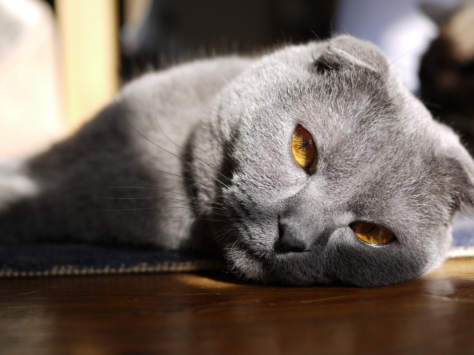 Wallpaper Beautiful gray Scottish Fold cat with red eyes