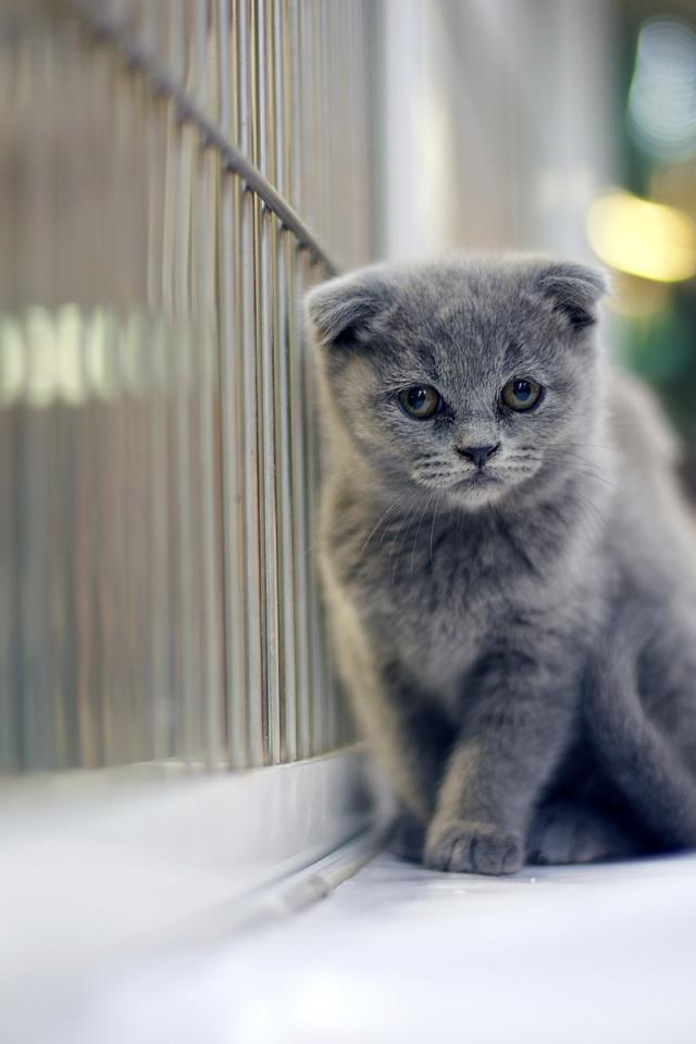 Wallpaper Sad gray Scottish Fold cat