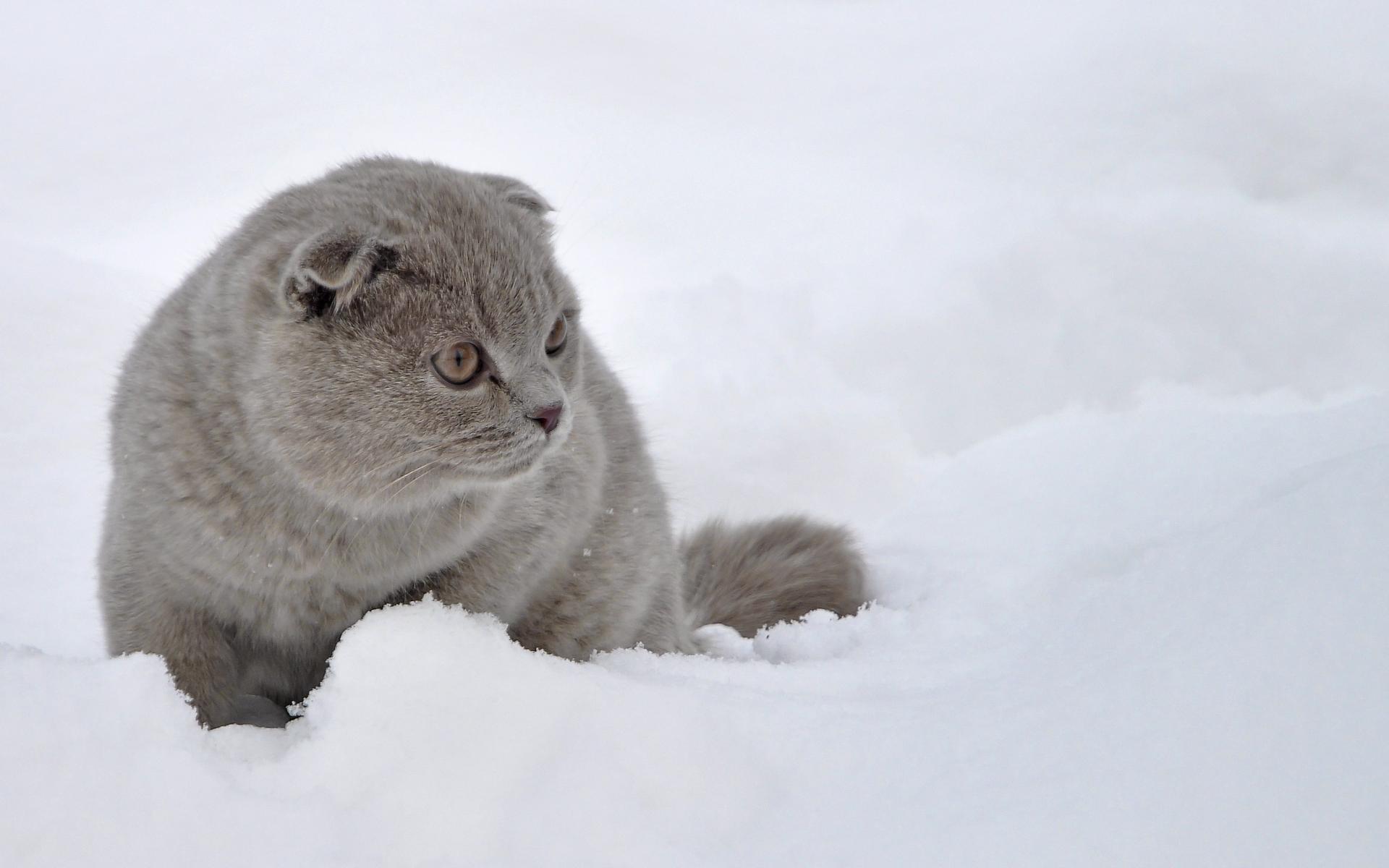 Wallpaper Scottish Fold cat in the snow
