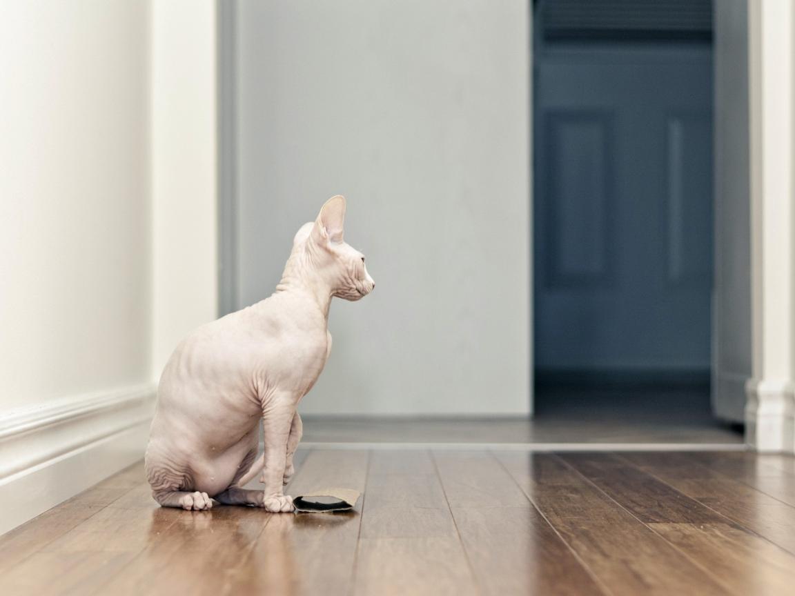 Wallpaper Beautiful sphinx cat is sitting on the floor