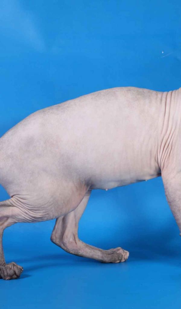 Wallpaper Sphynx cat and an apple on a blue background