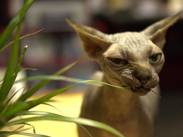 » Wallpaper Sphynx cat eats plant