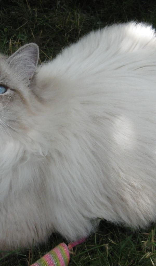 » Wallpaper Siberian cat on grass