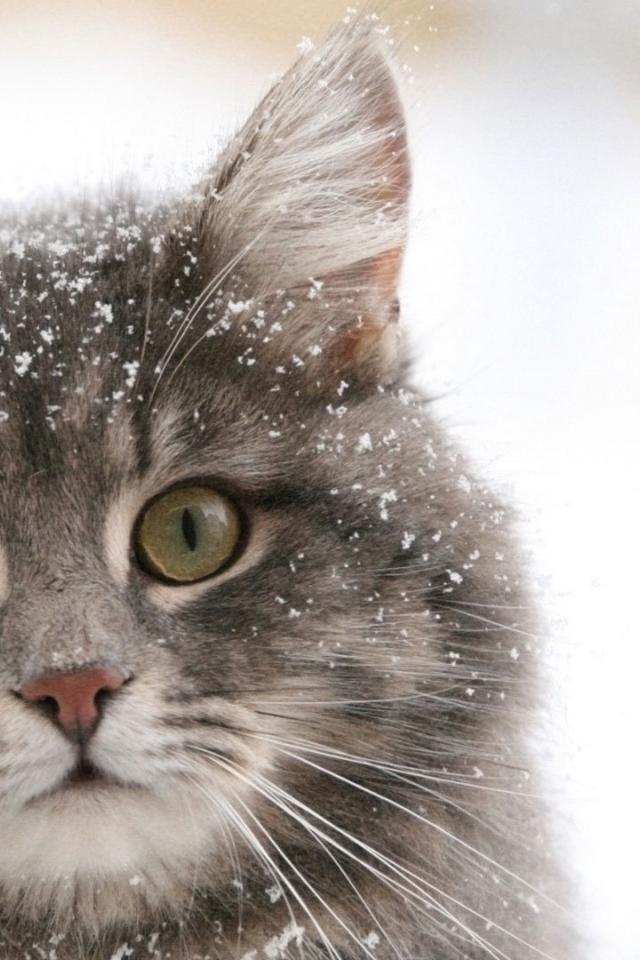 Wallpaper Siberian cat in the snow