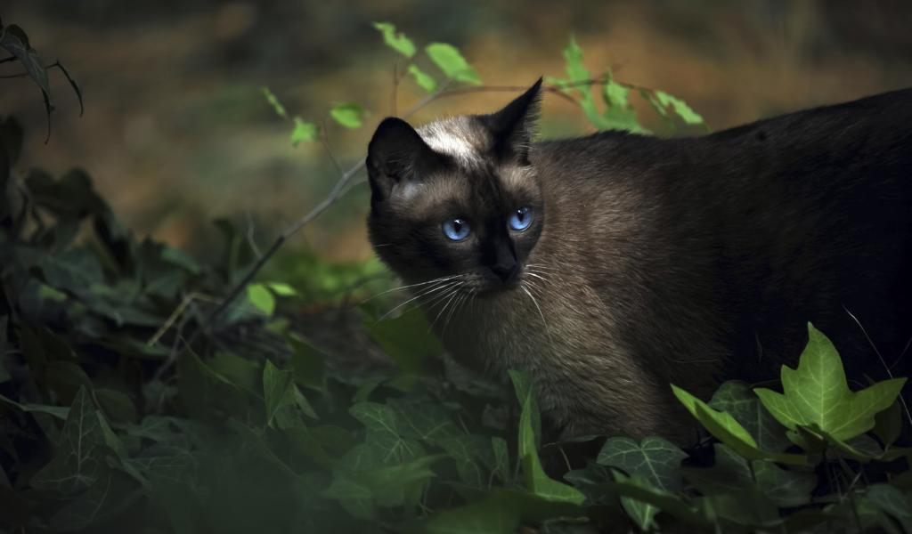Wallpaper Beautiful Siamese cat among plants