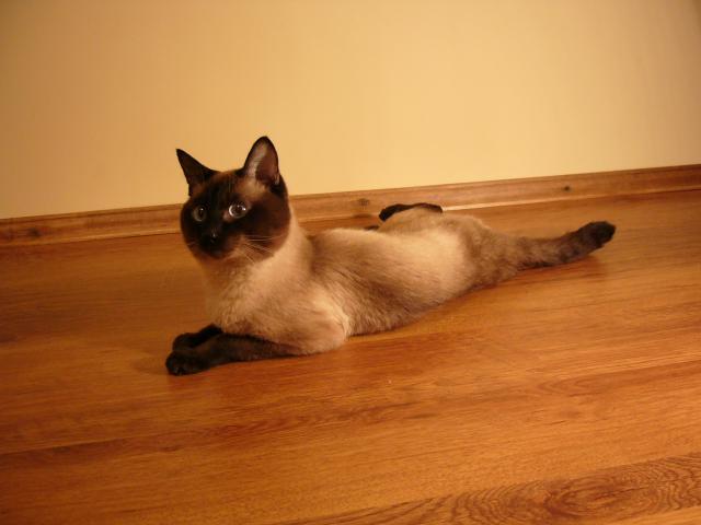 Wallpaper Siamese cat sprawled on the floor
