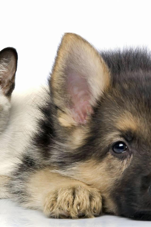 Wallpaper Siamese cat and dog posing