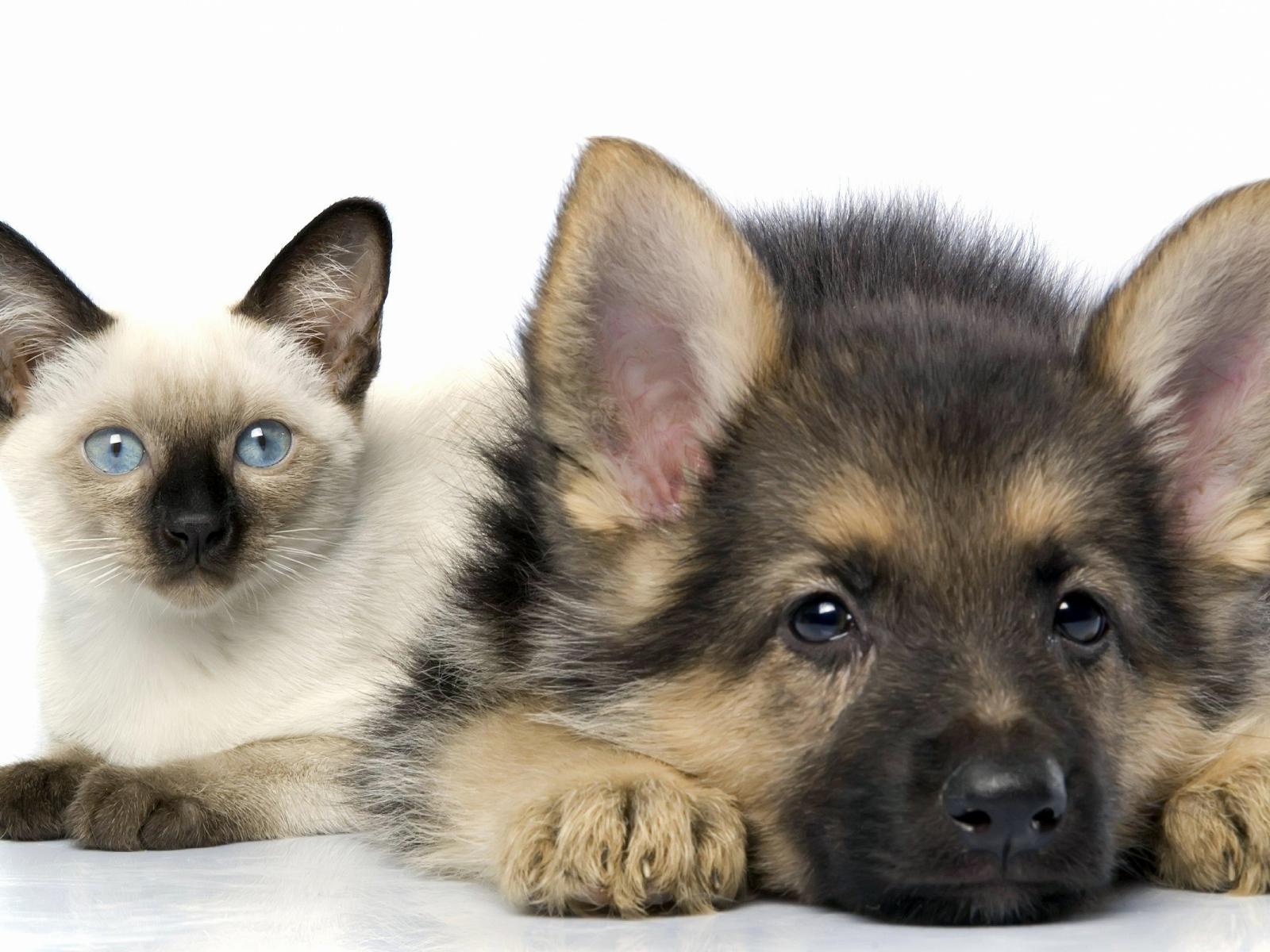 Wallpaper Siamese cat and dog posing