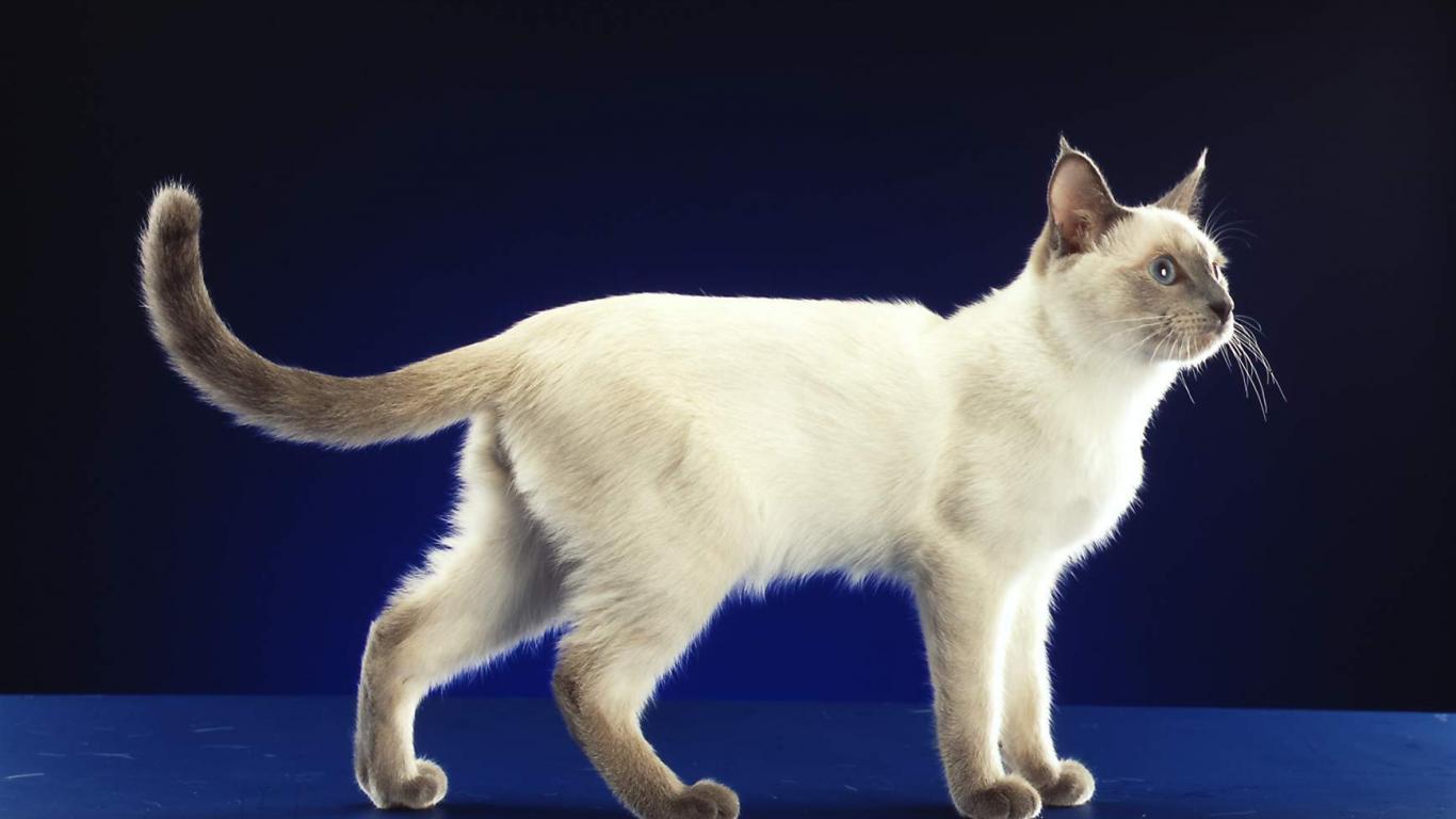 Wallpaper Siamese cat posing on a blue background