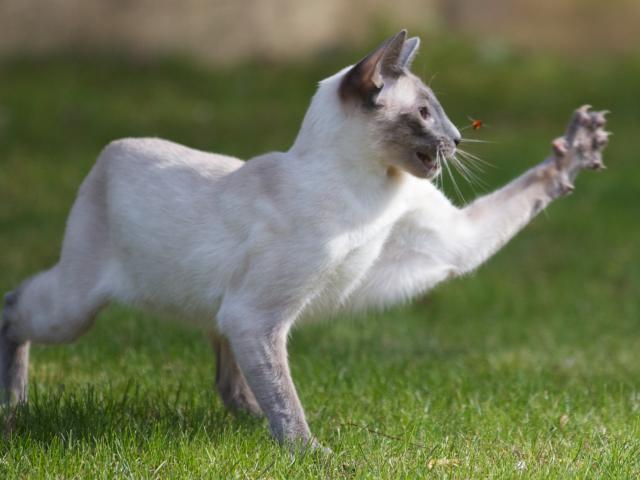 Wallpaper Siamese cat hunts insect