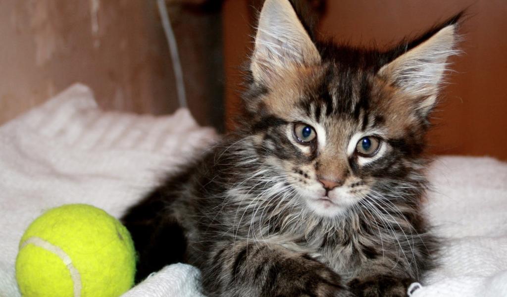 » Wallpaper Small beautiful Maine Coon cat with a ball