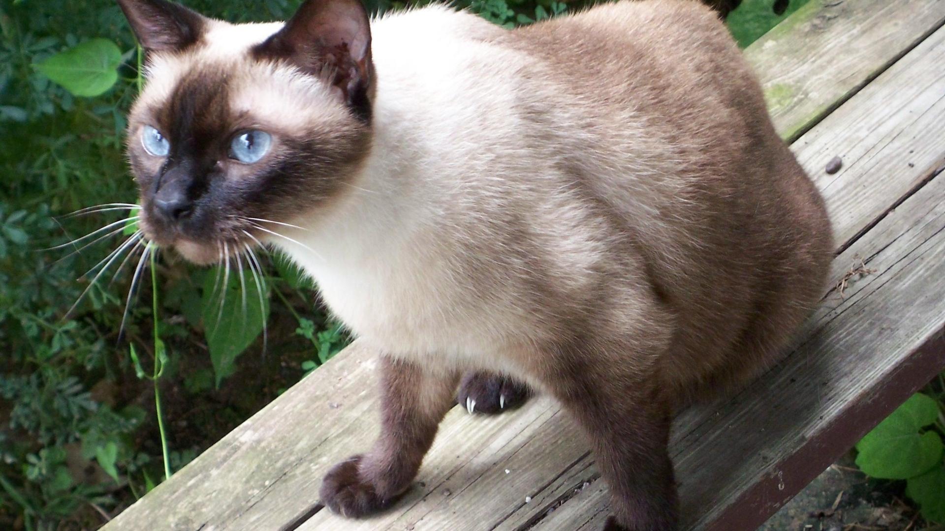 » Wallpaper Siamese cat sitting on the bench