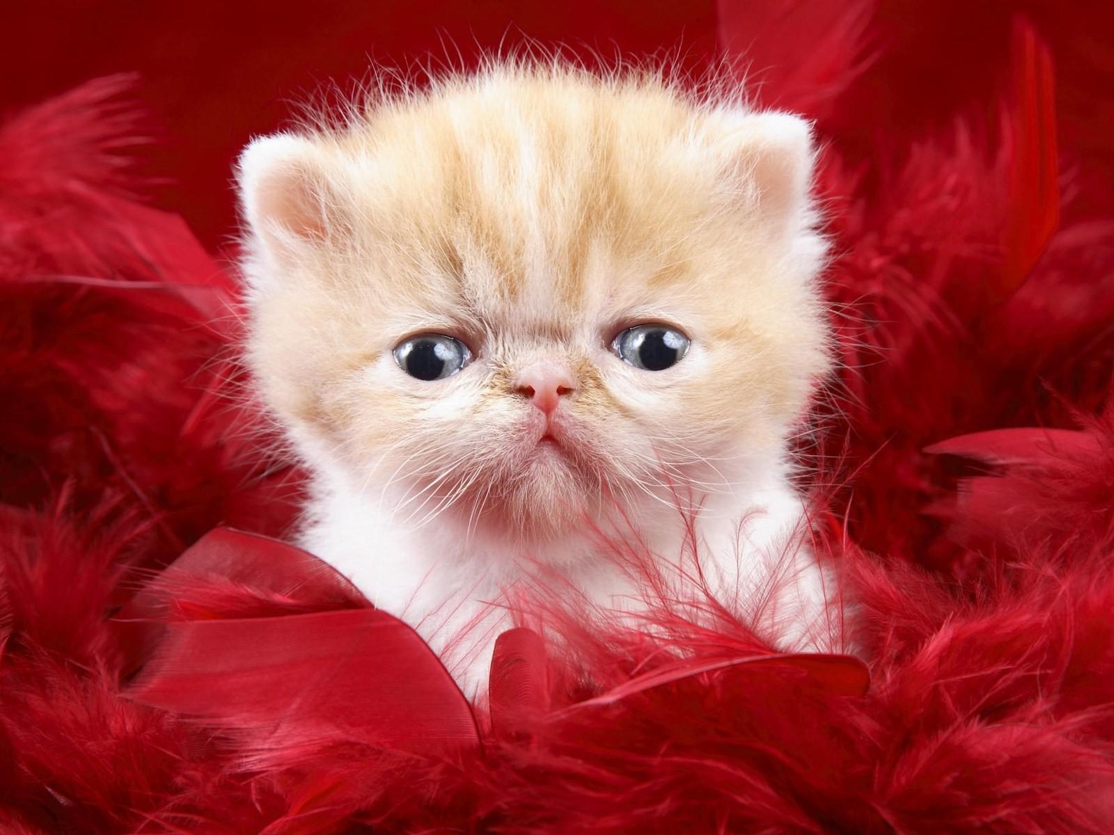 Wallpaper Small Persian cat in red feathers