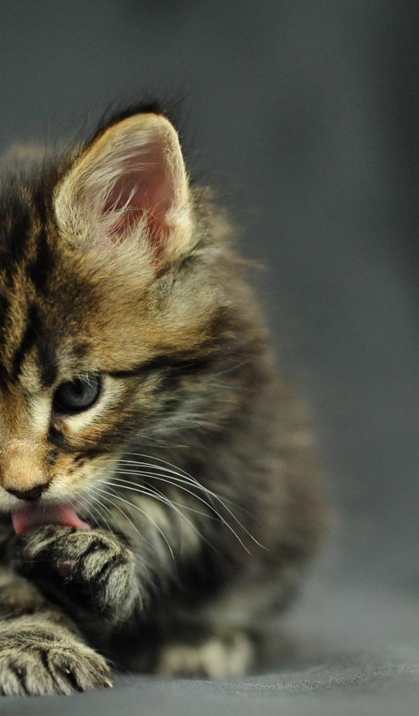 Wallpaper Small beautiful Maine Coon cat licking its paw