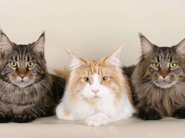 Wallpaper Three serious Maine Coon cat pose