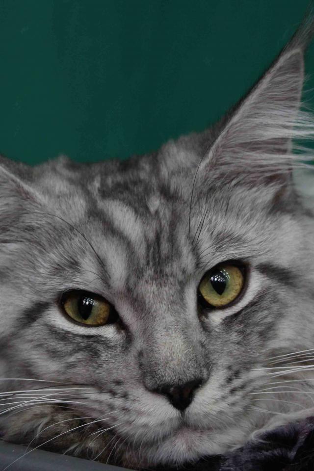 Wallpaper Silver Maine Coon cat sprawled on the host bed