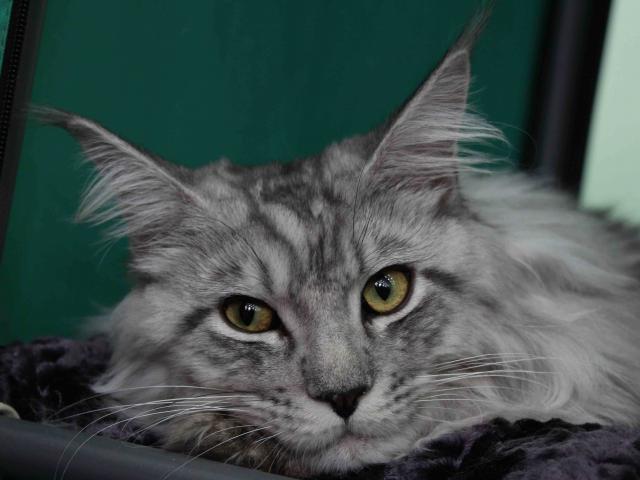 Wallpaper Beautiful silver Maine Coon cat on a sofa