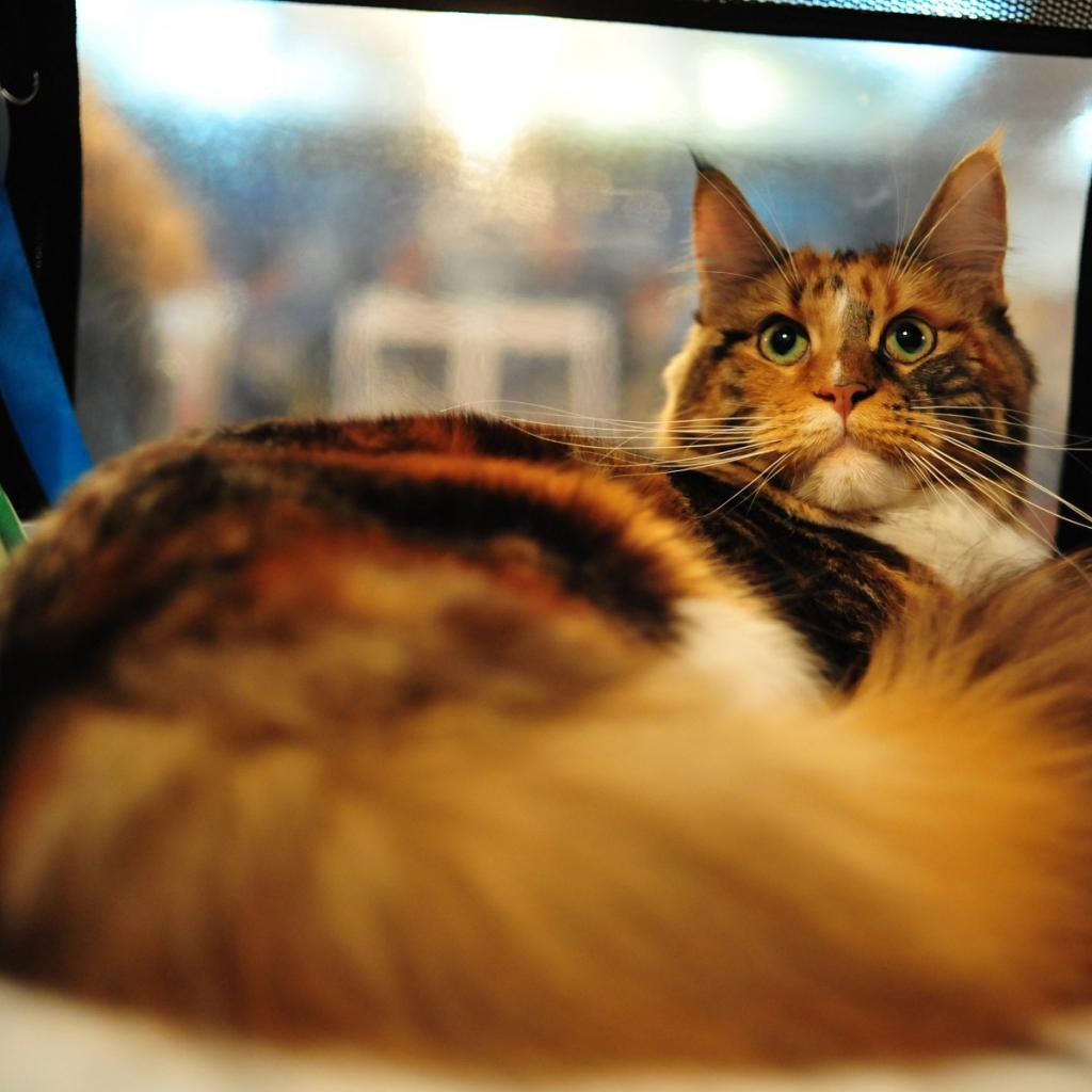 Wallpaper Maine coon cat with green eyes posing