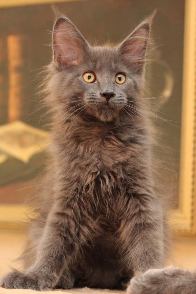 Wallpaper Small and cute gray cat Maine Coon looking at someone