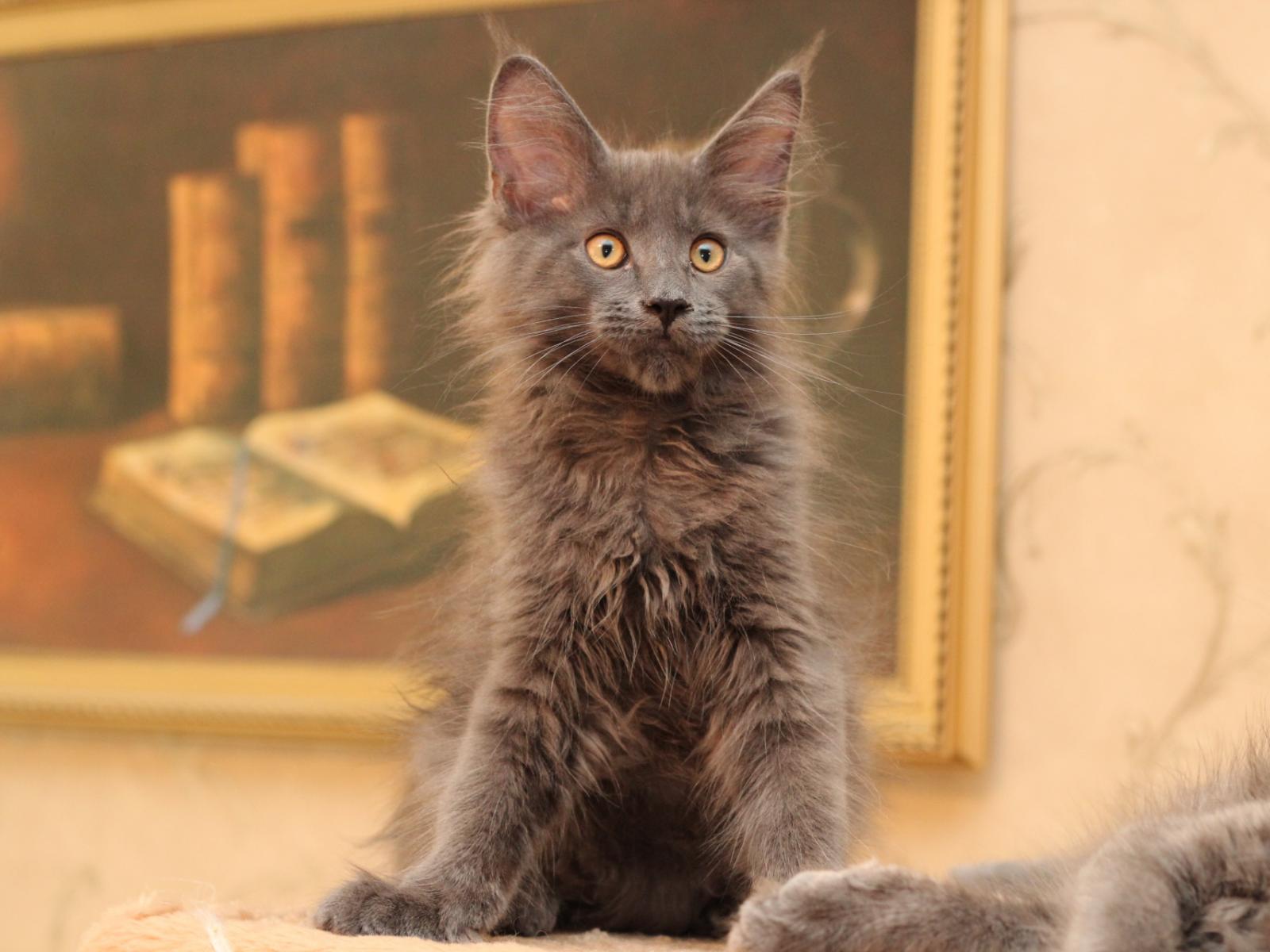 Wallpaper Small and cute gray cat Maine Coon looking at someone