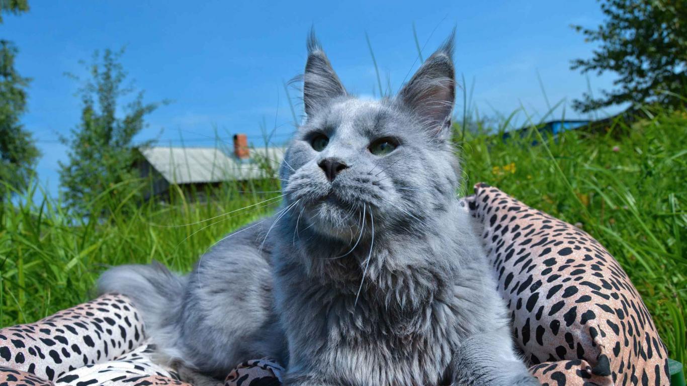 Wallpaper Grey young Maine Coon cat in nature