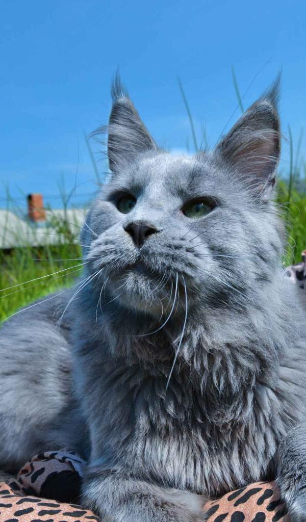 Wallpaper Grey young Maine Coon cat in nature
