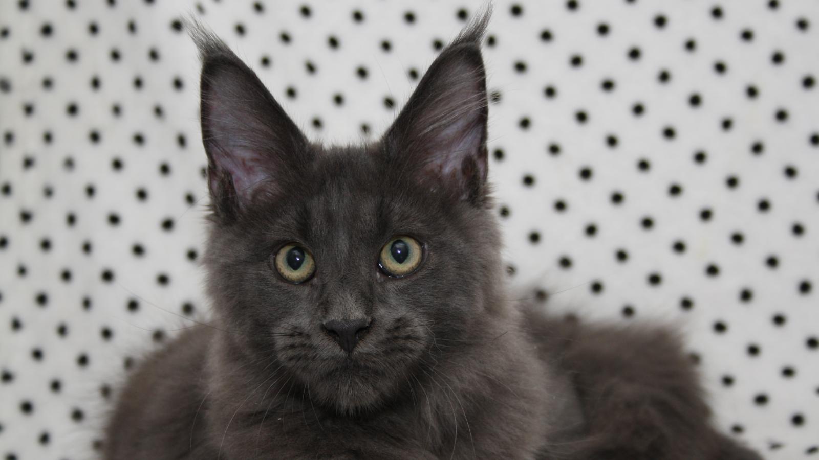 Wallpaper Young Red Maine Coon cat plays on a black background