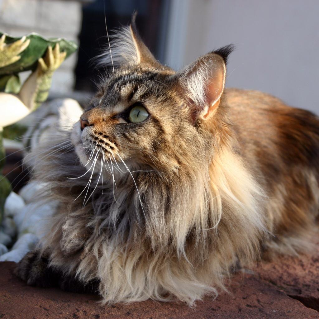 Wallpaper Maine coon cat with green eyes saw someone