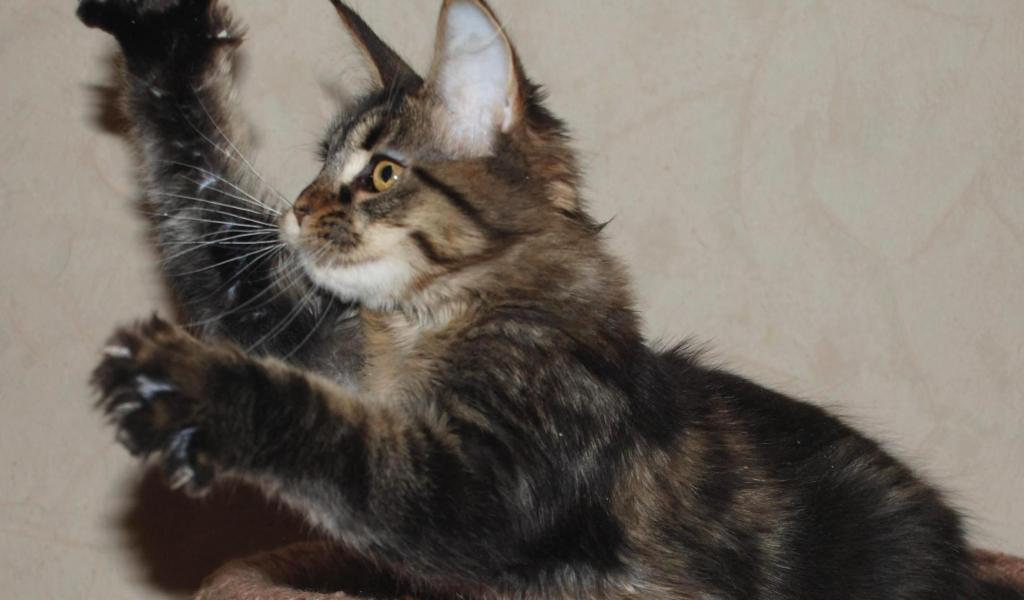Wallpaper Small beautiful Maine Coon cat plays