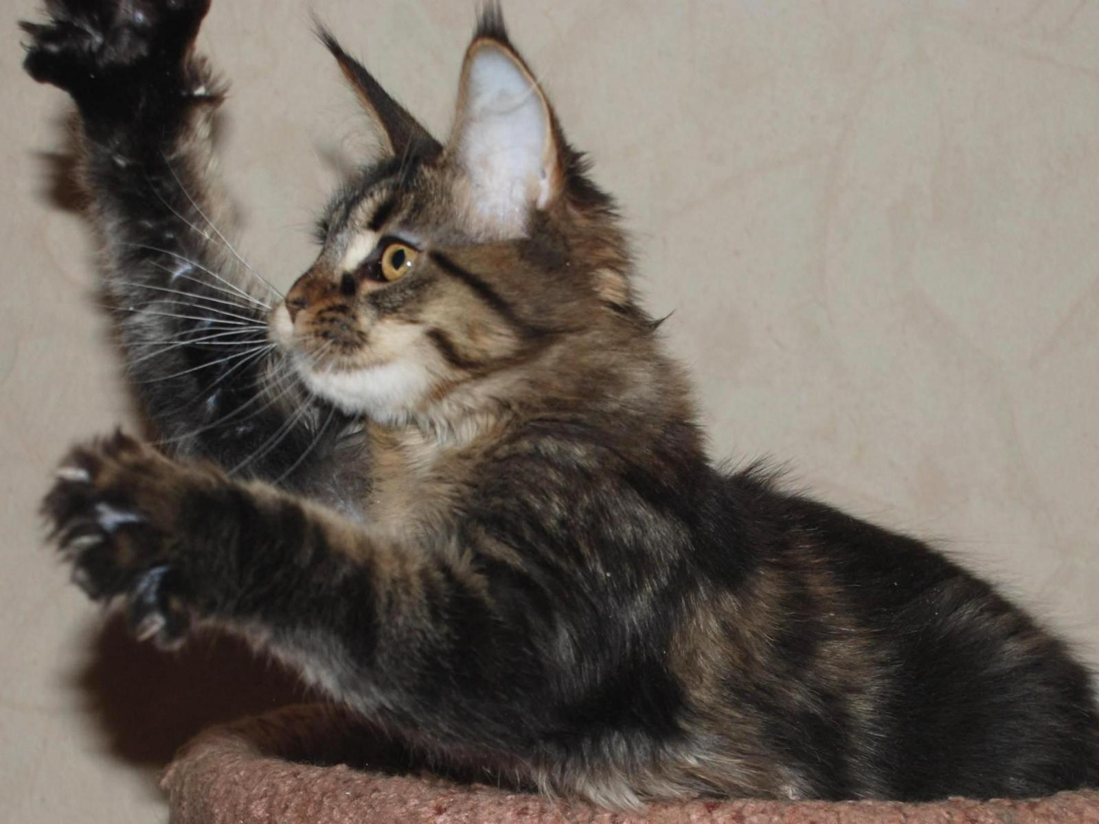 Wallpaper Small beautiful Maine Coon cat licking its paw