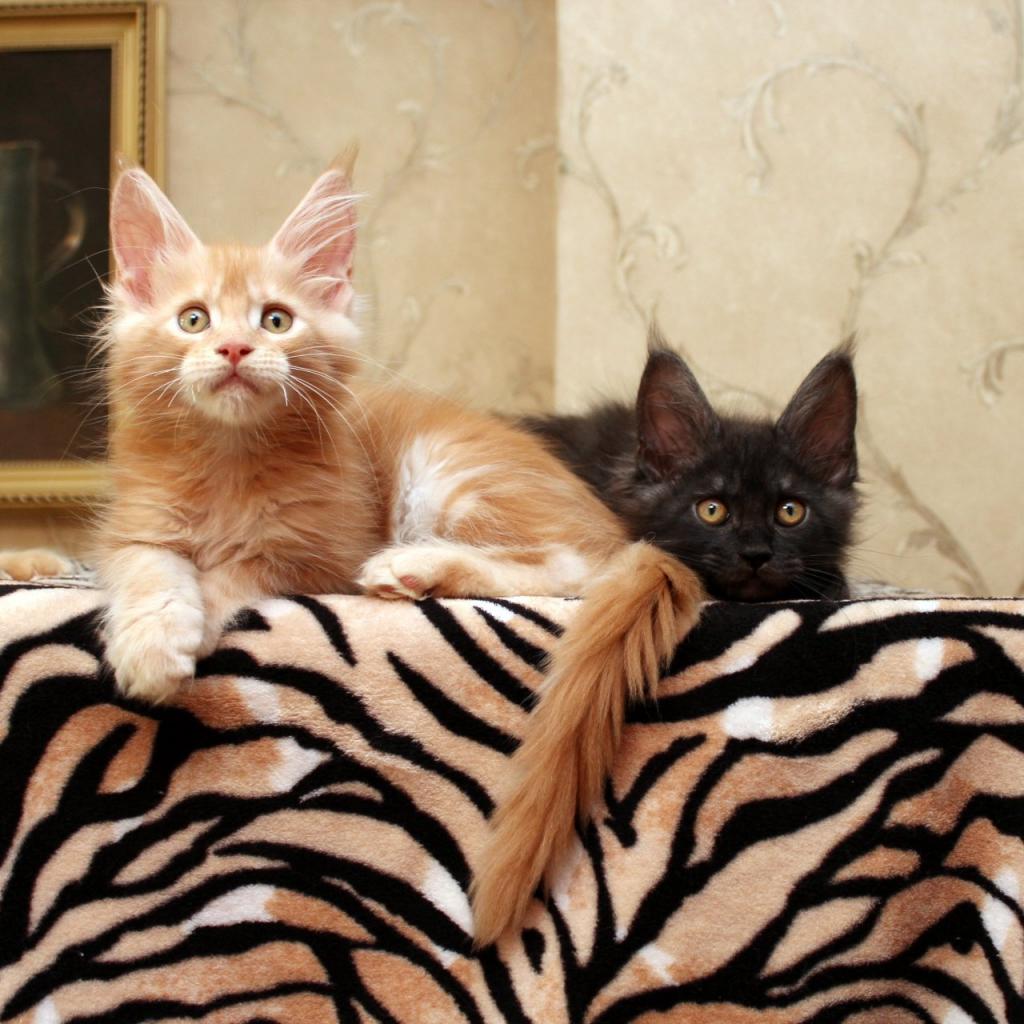Wallpaper Small cats Maine Coon somewhere watching lying on the bed