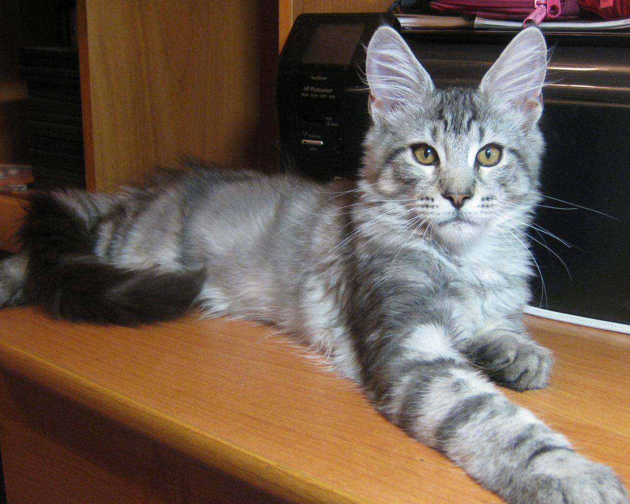 Wallpaper A young Maine Coon cat sleeping, black-and-white photo