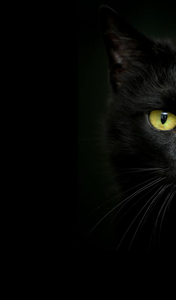Wallpaper Beautiful black cat on a dark background